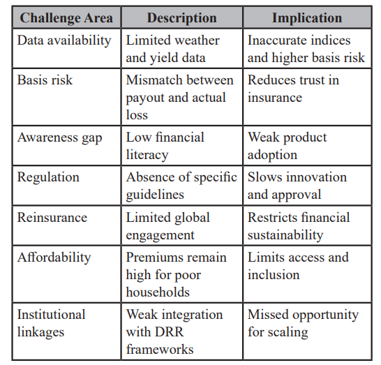 - Limited awareness: Farmers and small enterprises may lack understanding of index-based products.