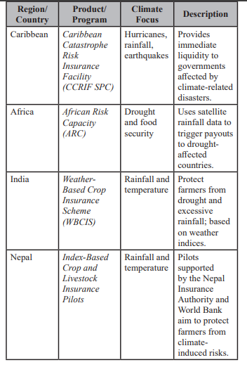 - Pacific Catastrophe Risk Assessment and Financing Initiative (PCRAFI): Similar regional pool for Pacific nations.