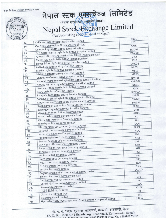 नेप्सेले सार्वजनिक गर्यो स्टक डिलरमार्फत कारोबार गर्न योग्य ११० कम्पनीको सूची