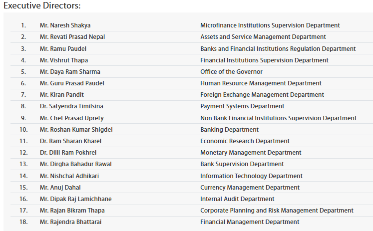 | 21. | Mrs. Indra Chamlagai (Mainali) | Banks and Financial Institutions Regulation Department |
