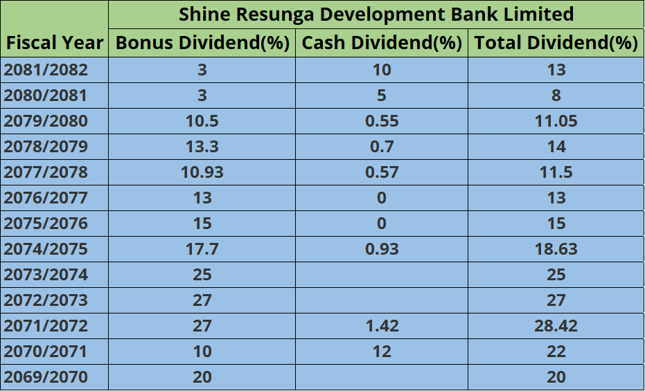 शाइन रेसुङ्गा डेभलपमेन्ट बैंकको १३ प्रतिशत लाभांश घोषणा, चुक्ता पूँजी ५ अर्ब २ करोड पुग्ने