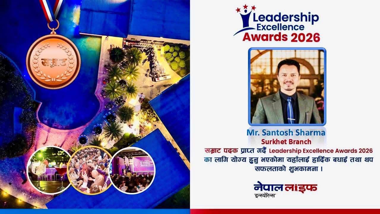 केमेष्ट्रिमा स्नातकोत्तर गरेका सन्तोष शर्मा बीमा अभिकर्तामा जम्दै, नेपाल लाइफबाट सिओटी बन्न सफल