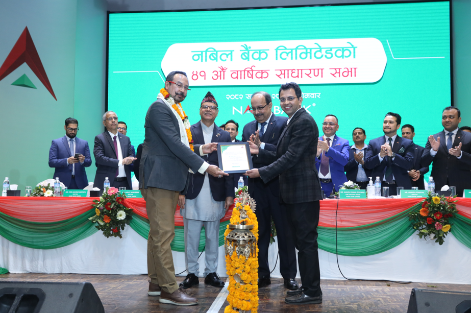 नबिल बैंकले साधारणसभा समयमै सम्पन्न गर्न सहयोग गर्ने शेयरधनी, नियामक निकाय, ग्राहक वर्ग, बैंकका कर्मचारी र अन्य सम्बद्ध निकायहरूप्रति आभार व्यक्त गरेको छ ।