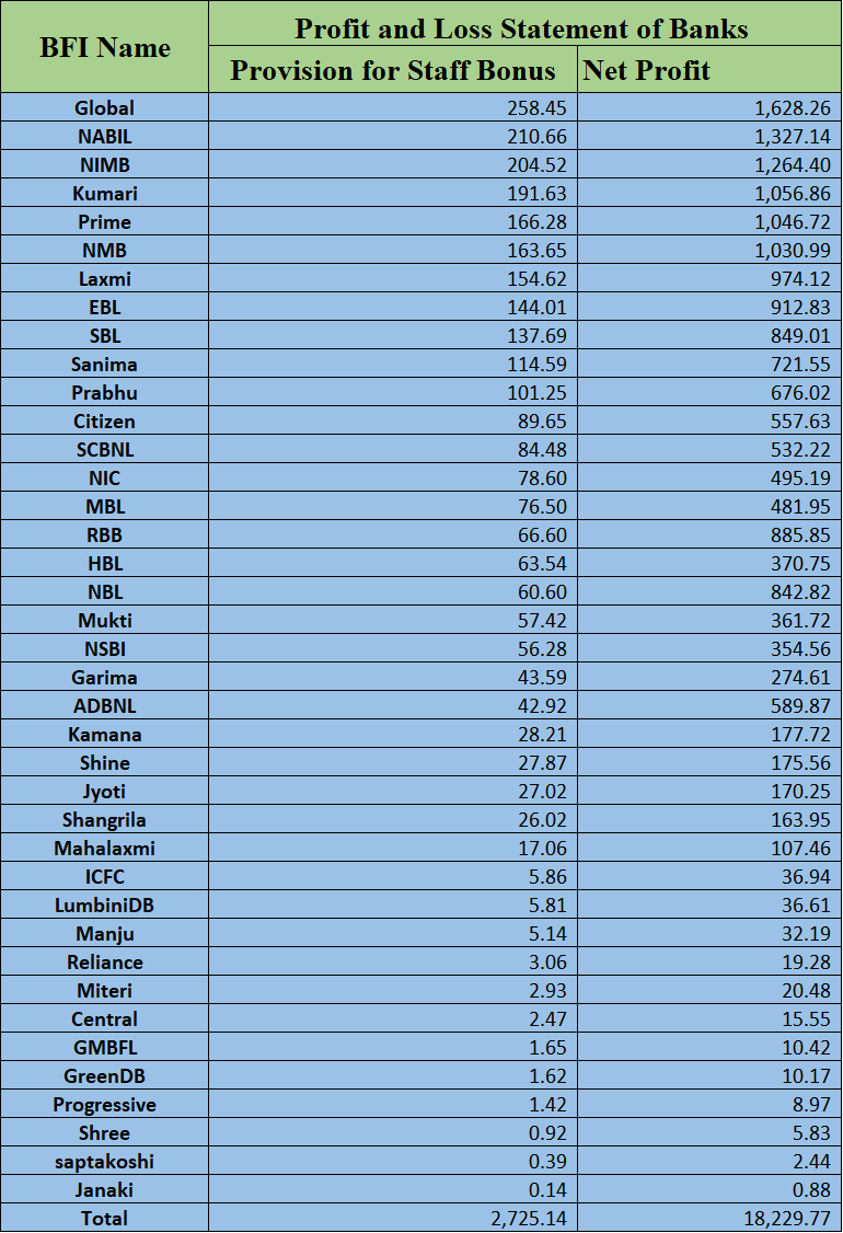 बैंक वित्तीय संस्थाले दुई महिनाको मुनाफाबाट कर्मचारीलाई छुट्ट्याए २ अर्ब ७२ करोड रुपैयाँको बोनस