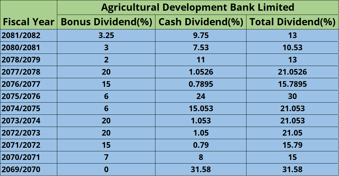 हाल बजारमा कृषि विकास बैंकको प्रतिशेयर अन्तिम कारोबार मूल्य (LTP) रू. ३१५.०० रहेको छ। यस प्रस्तावले बैंकका सेयरधनीहरूलाई केही राहत प्रदान गर्ने अपेक्षा गरिएको छ, साथै आगामी साधारणसभापछि लाभांश वितरण प्रक्रियालाई टुंगो लगाइनेछ